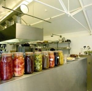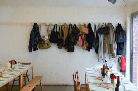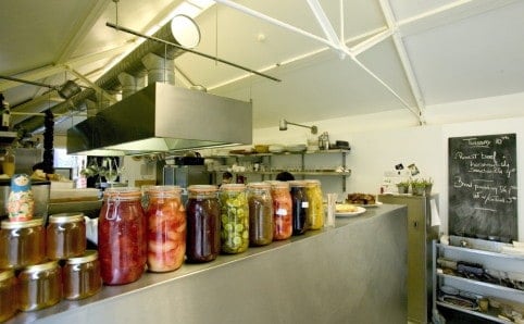 On my travels in Shoreditch I asked my friends at the menswear shop Present where to have lunch. They suggested Rochelle Canteen at Arnold Circus, just of Shoreditch High Street. This restaurant is extremely hard to find even using Google maps, it’s in an old school building behind a wall which has one steel door – this is the entrance. You then enter a grass covered space with what looks like a temporary shed-like building – This is the restaurant Rochelle Canteen. A ledge to get in and a bit cramped on space for a wheelchair but they were very accommodating and the table height was just right and no legs getting in the way .