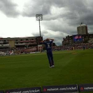 This year we went again and sat in the wheelchair enclosure in Stand 20. It was the 2nd One Day International against Australia. It was the best view as you were side on to the field of play and plenty of cricketers stood near us – see below. It rained on and off but there was some sun. I got drenched and sun-burnt all in one afternoon (only in England). There was no Citroen van this time and it wasn’t as clean as I remember. There was also a mysterious smell which wafted over occasionally. However, the banter from the crowd was funny and England won so a good time!