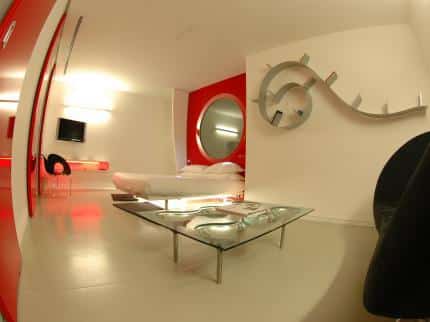The hotel’s website says that they use ‘alternative materials, bright colours and unusual shapes to make a hotel futuristic and exciting’ and describes staying there as ‘an unprecedented experience.’ The hotel’s unconventional decoration was designed by Ron Arad.