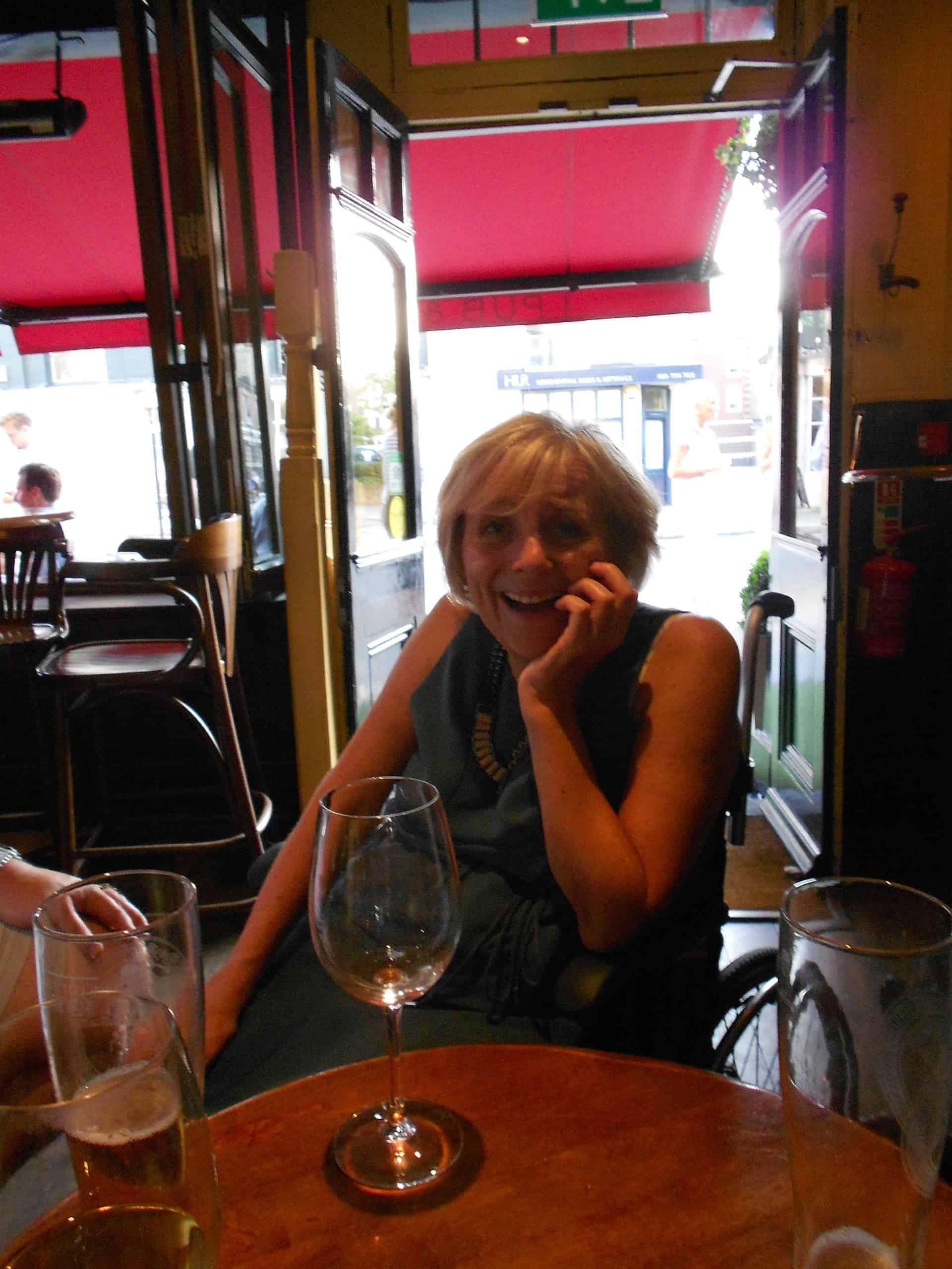 It was a perfectly pleasant pub and a decent spot for a quick drink which is clearly a popular choice amongst the locals after a hard days work. Getting in was pretty accessible although a little bit of a bumpy ride for Fiona. The main area was flat, although other sections of the pub were up a couple of steps and there was no disabled toilet. But it did a good job as our backup option when the Bumpkin fell through. It was while we were there that Amanda managed to join us. The traffic had clearly been a nightmare but she was on top form and ready to join in the revelry.