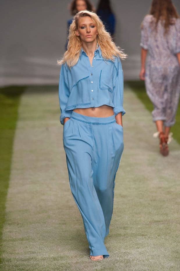 Whistles – SS14, Baggy Trouser Theme is Common to Many of the Designers & Useful if You Need Room to Move or Sit.Whistles SS14 – Pink Will Be a Key Colour Plus Bermuda Shorts, Wide Fit Sandals Also Good For swollen Feet??Unique – SS14 – Tassled Fringing is a Feature of Their Hippy Beach Girl Collection, Note the Wide ShoesUnique – SS14, Baby Blue Another Key Colour With Crop Top Shirts & More Baggy Silk Trousers.Unique – Indigo Blue & Sea Green Plus the Peplum is Still Around In Many Collections. Scarf Style Wrap Skirts Are Also Prominent – Great as You Don’t Need to Worry About Keeping Your Skirt Looking Neat While Seated.