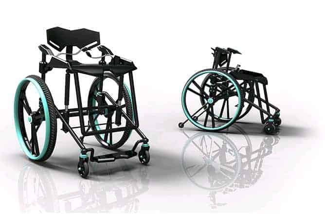 Leaving the realm of wheelchairs which are currently on sale and moving into the slightly murkier area of prototypes and new wheelchair concepts, the UP Wheelchair looks like a superb idea for the future. The designers targeted a simple problem – the fact that wheelchair users find themselves operating at a lower level to able bodied people. This leads to objects, switches, door handles, etc being out of reach and needing to find solutions to the problem of trying to a conversation on different levels which can be awkward (or worse, condescending).
