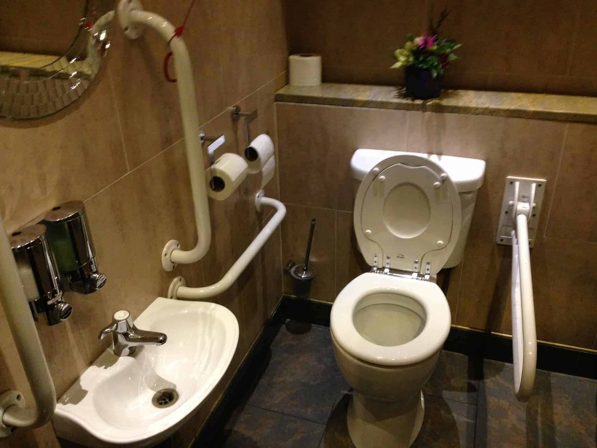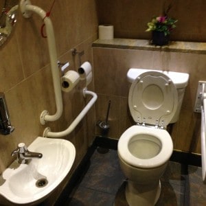 We had a late Sunday lunch at the Phoenix Palace Chinese Restaurant and I must say I was very impressed. The access for wheelchair users is via a ramp at the front door, then main restaurant access is on one level including the less abled WC which is well equipped with drop down hand rails and emergency pull cord. The only problem was that the mirror above the sink is too high for a wheelchair user.