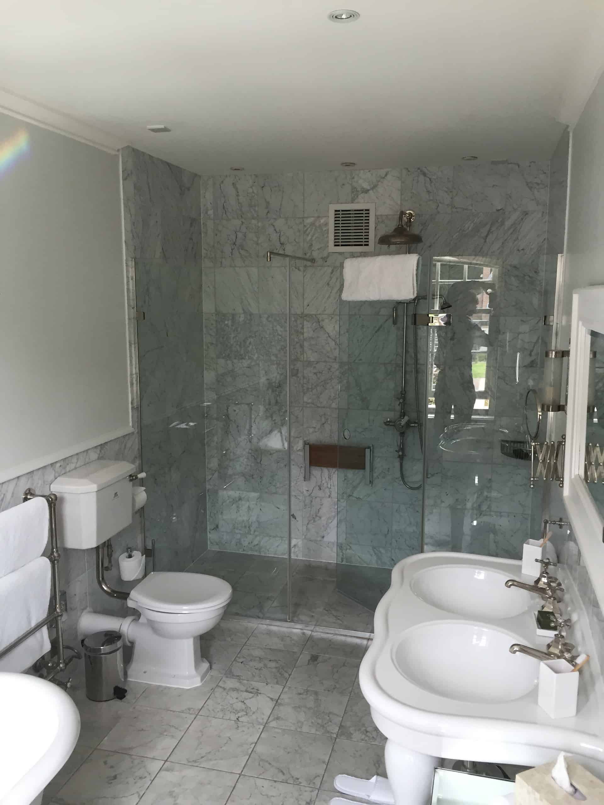 We’re not sure if there’s an induction loop but the smooth wooden floor has a rug and the sound is good as the ceilings are not too high. They do have a Personal Evacuation Plan and there is a deaf fire alarm. A grand staircase takes you to the rooms and of course there’s a lift. We viewed the ‘accessible’ room and it was large enough for a wheelchair but that was it! The bathroom had a shower but there was a significant step/lip to get over and although it appeared to be a wet room, the shower screen extended across the room leaving not a lot of manoeuvrability for a wheelchair. There was a foldable seat but no grab rails, neither were there grab rails around the toilet, a shame as I would have loved to stay there. However, I think they could easily change things and make this a truly inclusive room.