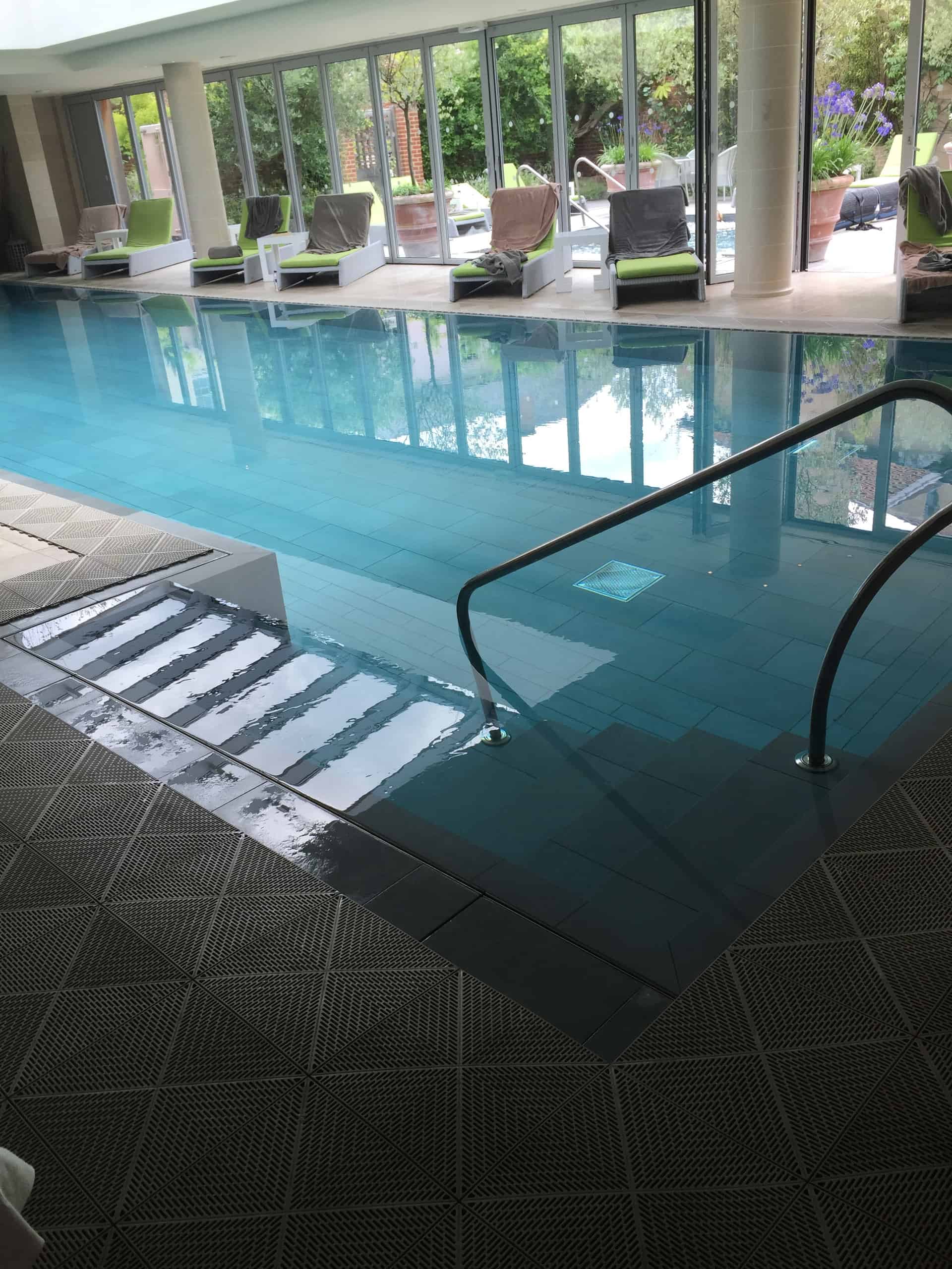 The rest of the hotel was fine, there was the occasional minor step e.g. from the pool to the outside bar, but the Chef’s Table, HH&Co Restaurant, Scullery/Breakfast Room and Spa were all on one level. The floors are flat surfaces and there is the obligatory rug but they appeared to be well fixed to the floors to avoid trips. We were shown the Spa and although the pool doesn’t have a hoist there are shallow steps and a grab rail into the pool. There’s also a disabled changing room.