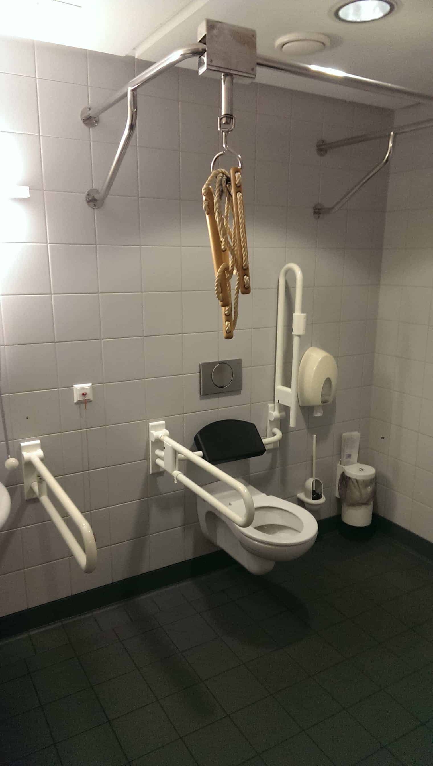 DT at German Gymnasium – As Beautiful as the Able Bodied Toilets – In a Grade II Listed Building – It Can Be DoneAnd Again at Stuttgart Airport ………Hoist Included