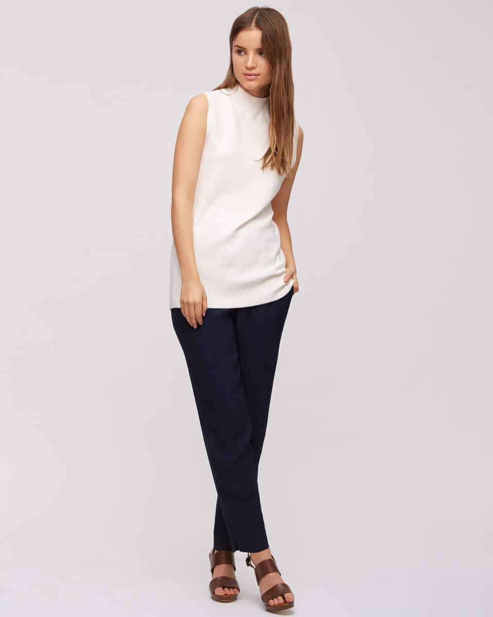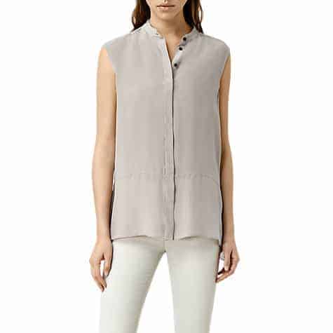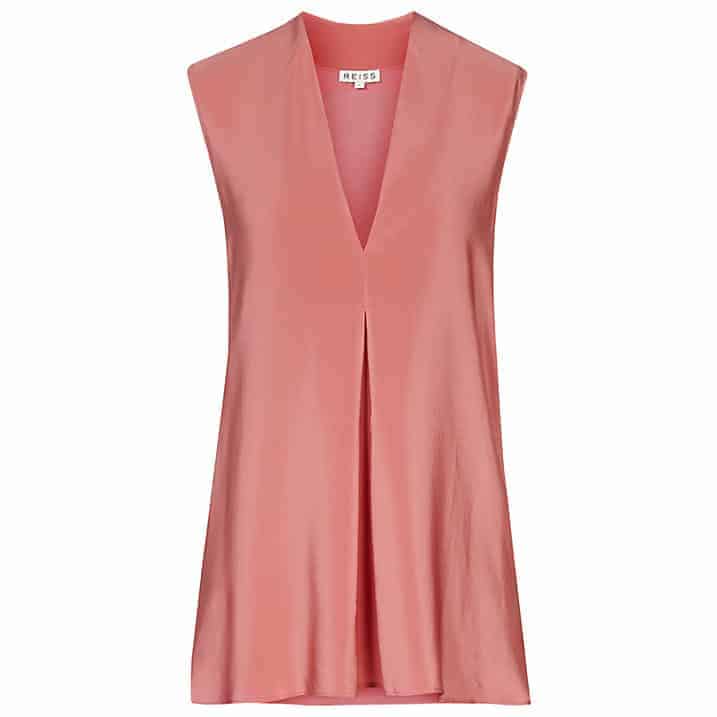 Match with a silk and viscose shirt from All Saints in taupe or maybe chalk white. No sleeves to mess about with, just a gorgeous soft feel and looks great under a cropped jacket. If you prefer something a little more feminine, Reiss have a beautiful rose pink sleeveless top that combines a luxe silk front panel with a super comfortable lyocell back panel. Alternatively wear them with the Cecily jumper, again from All Saints, that combines relaxed fitting with an interesting shoulder cut out – always good to emphasise the shoulders when you’re legs are out of view!