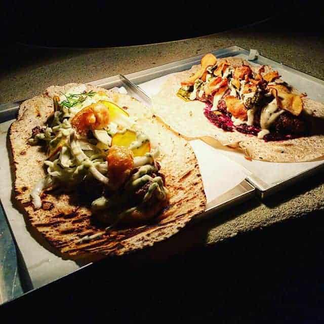 Intriguing Dishes From Le Bab – Roe Deer Adana (Cavolo nero kimchi, Jerusalem artichoke crisps, damson & chilli jam, game mayo, fried cavolo nero stem pickle) and Pork Shawarma (Winter salad, burnt quince puree, crackling, pork aioli, zhoug)