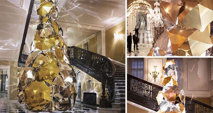 Even better, is this years Claridge’s Xmas Tree. They have a history of great decorations, in 2015 they had Christopher Bailey’s creation that featured over 100 umbrellas, each finished in bespoke gold and silver metallic fabric, and thousands of motion-sensor lights, programmed to sparkle and glitter as guests walked by the tree.